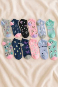 Set de medias cortas surtidas con diseños modernos y colores suaves, súper cómodas.