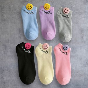 Set de medias cortas con diseño de carita sonriente, suaves, cómodas y modernas.