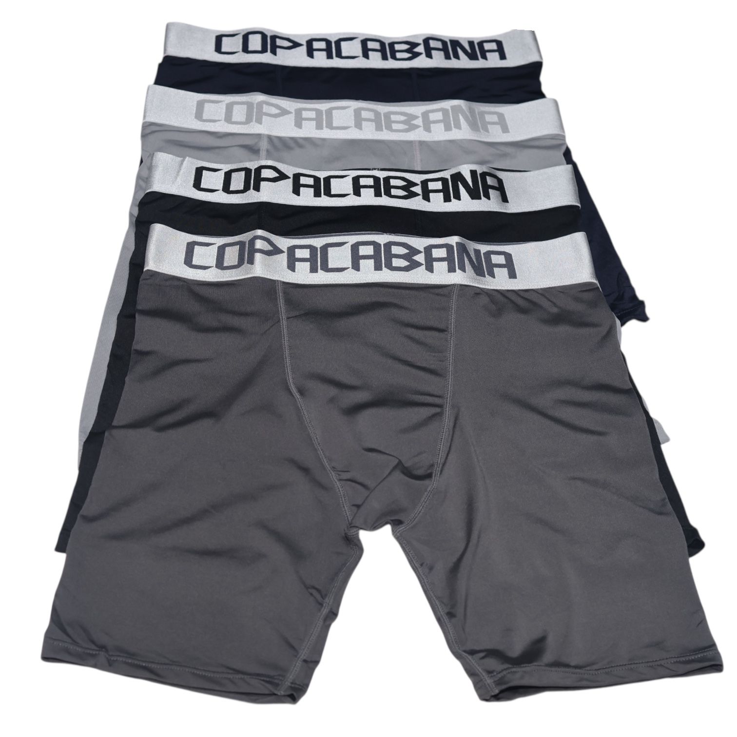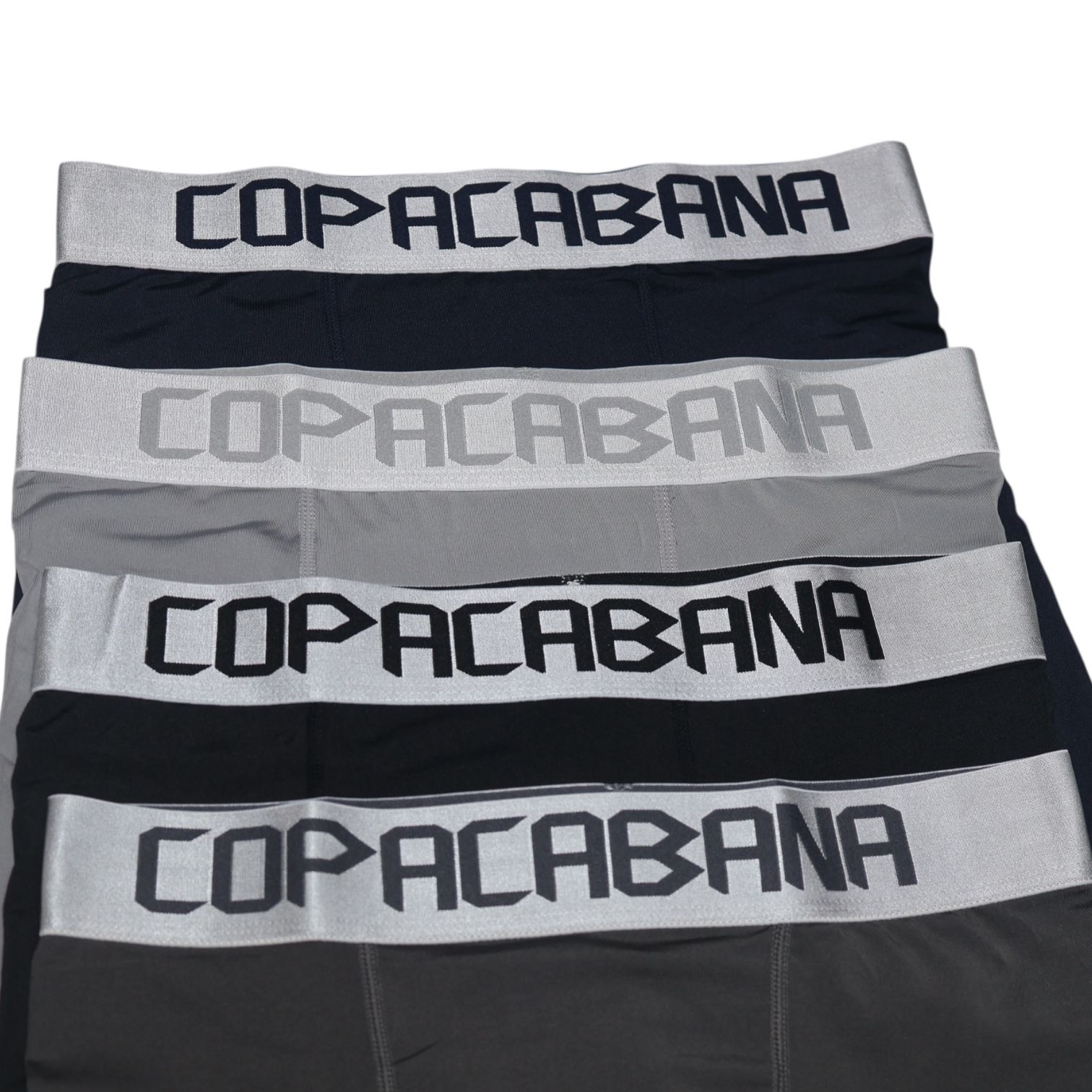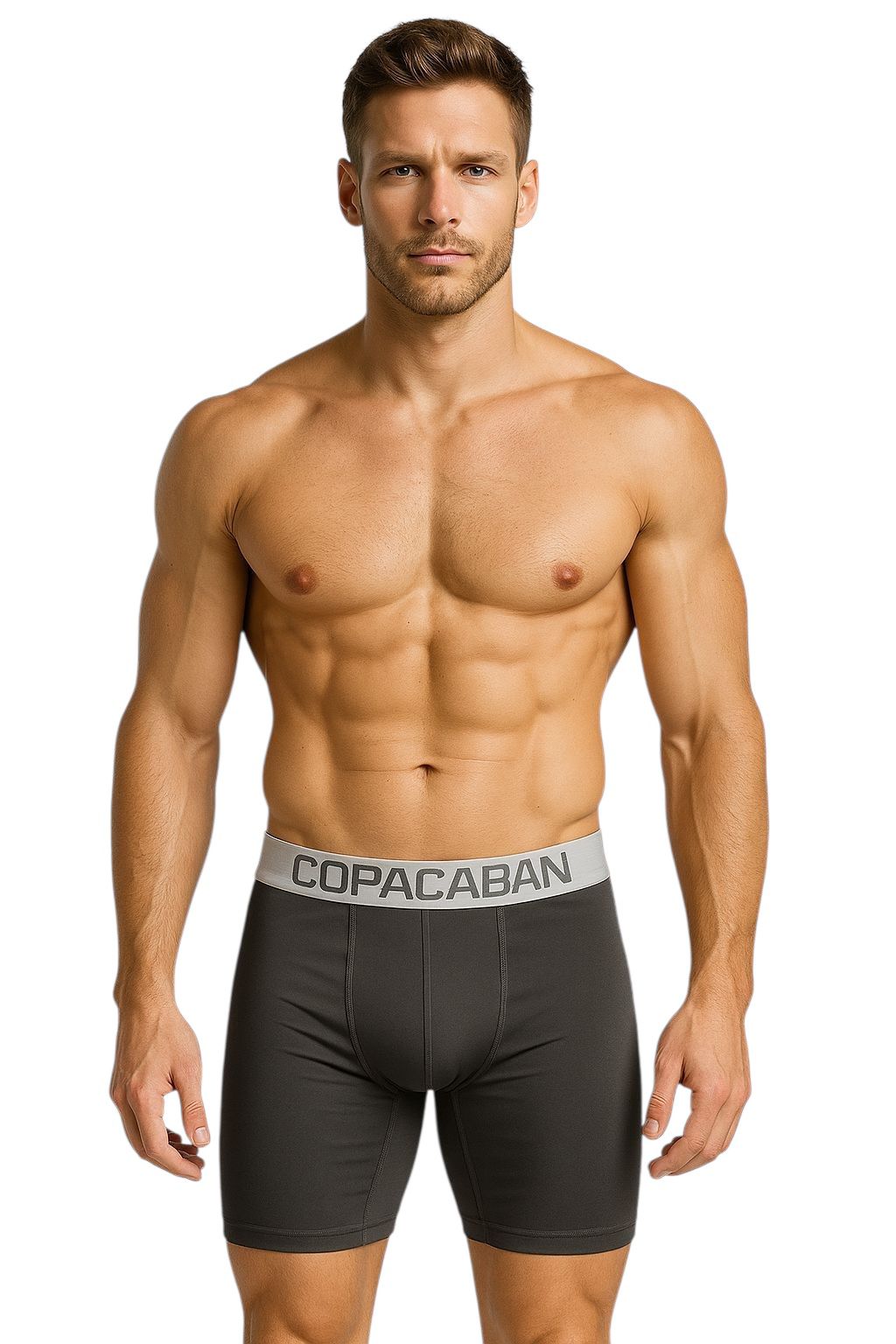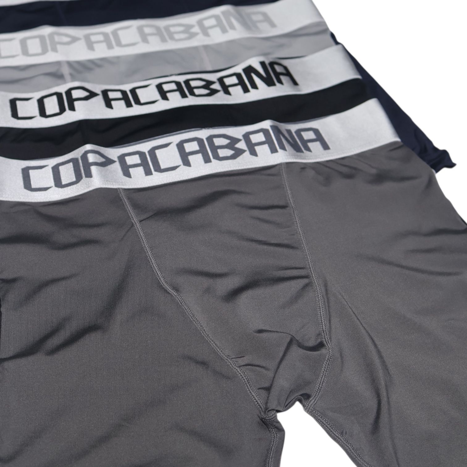 Boxer para hombre con diseño moderno y ajuste ceñido que se adapta al cuerpo proporcionando máxima comodidad y libertad de movimiento. Cuenta con una pretina elástica ancha decorada con el logo “Copacabana”, que asegura un ajuste firme sin presionar. Su tejido suave, ligero y transpirable lo convierte en una prenda ideal para el uso diario o actividades físicas, ofreciendo soporte y estilo en una sola pieza.