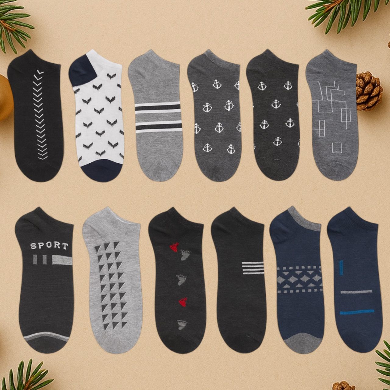 Set de medias cortas surtidas, cómodas, modernas y perfectas para uso diario con diferentes estilos.