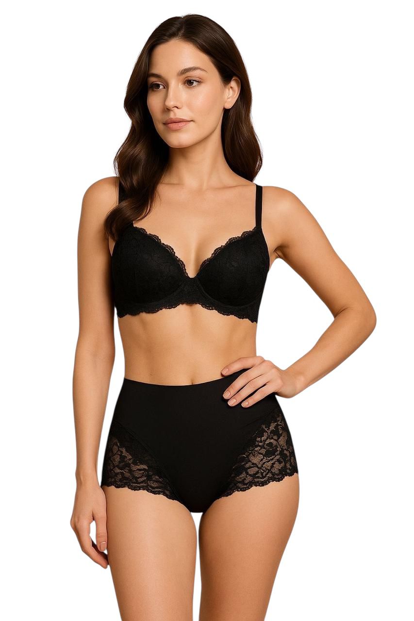 Calzones tipo faja con encaje floral, de control suave y diseño femenino.