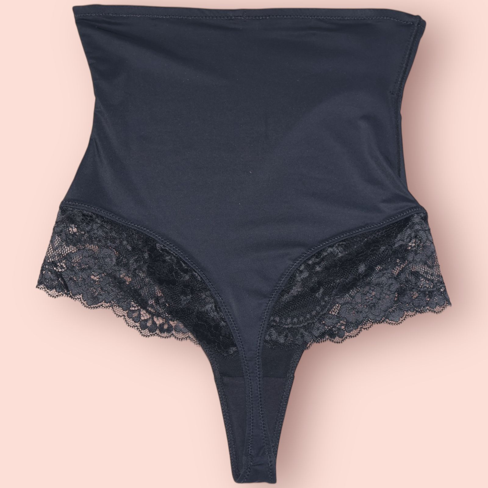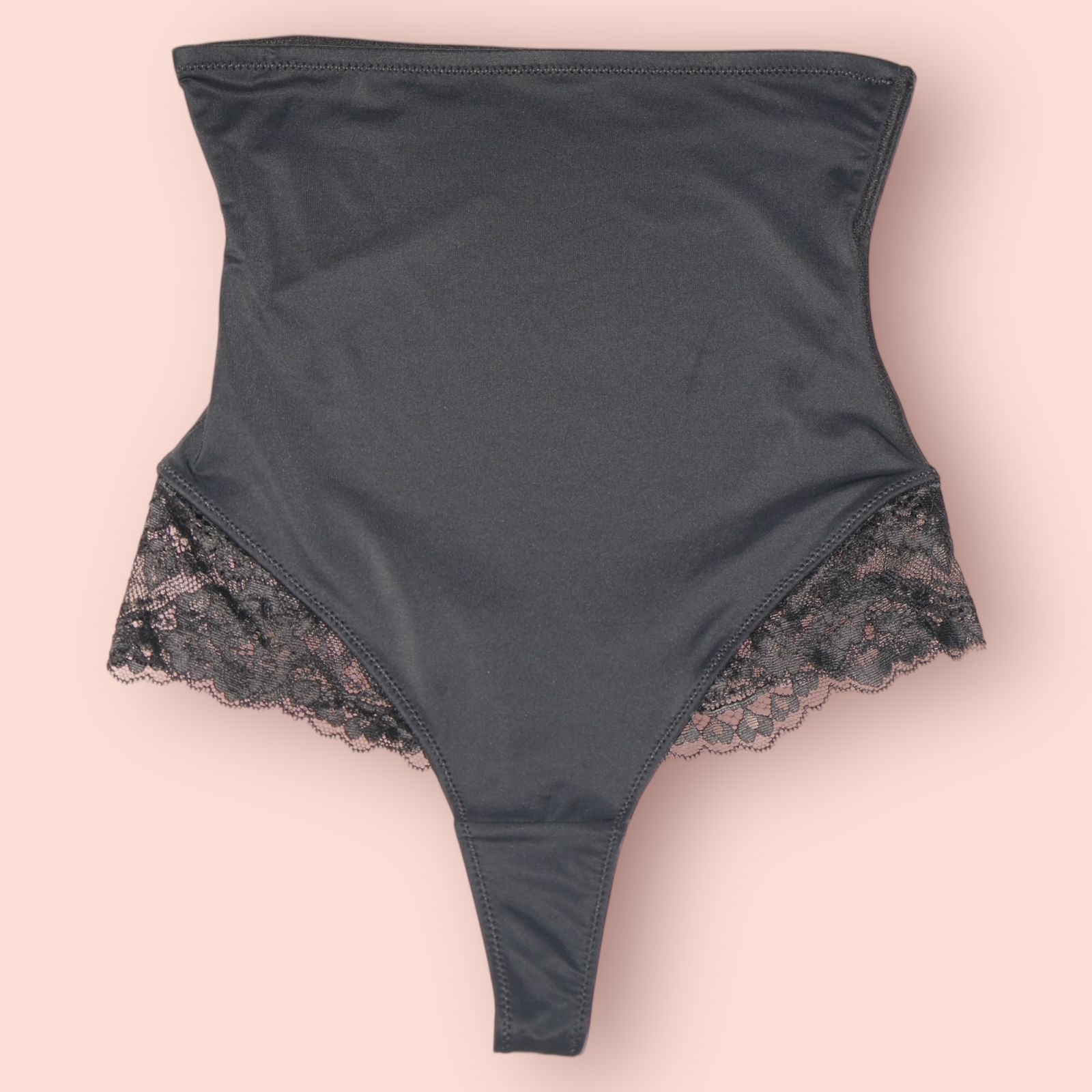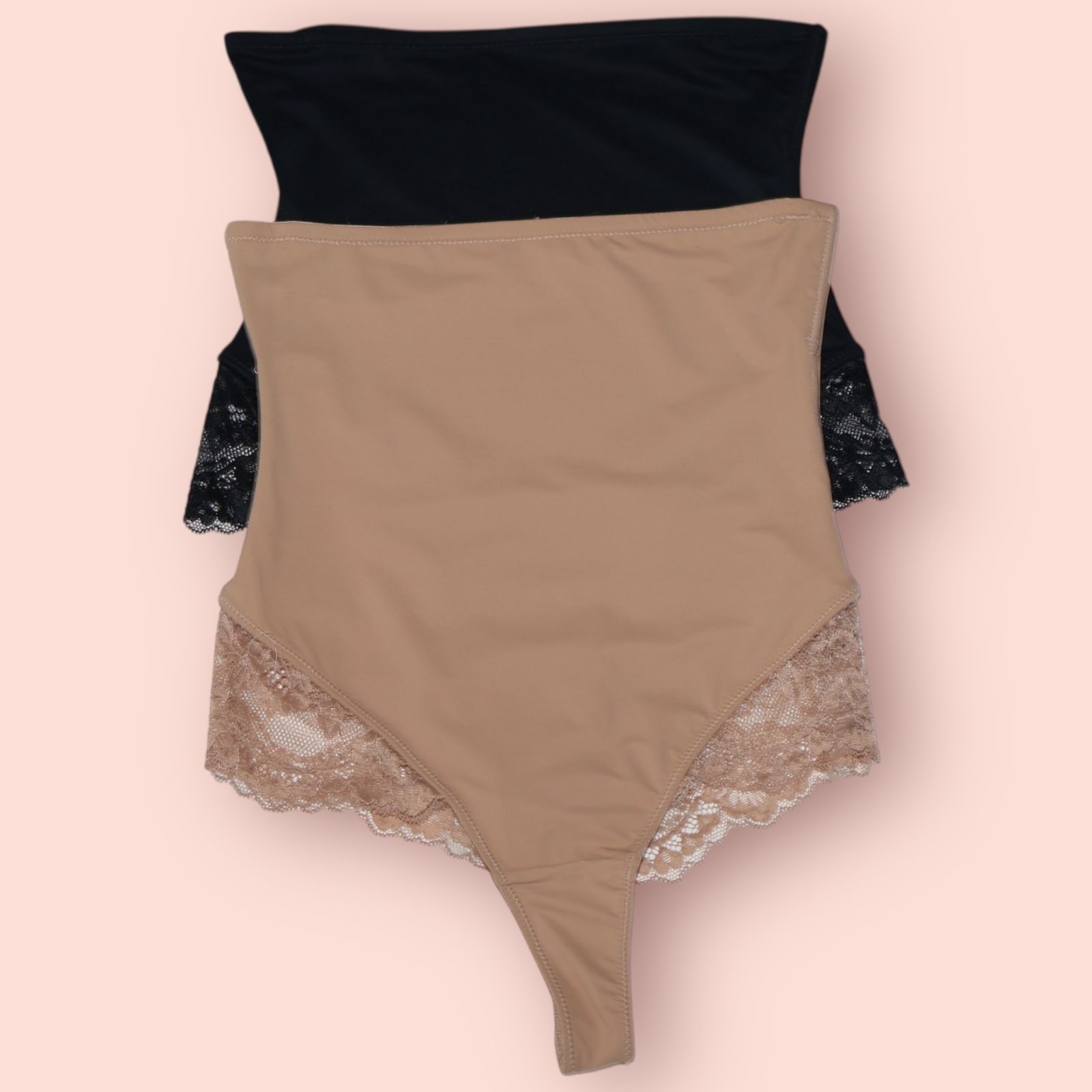 Calzón faja de talle alto con encaje, diseñado para moldear la cintura y el abdomen mientras realza la figura con un toque elegante y femenino.