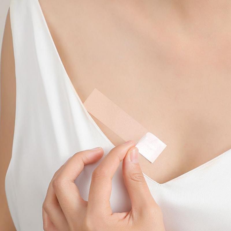 Cinta doble goma adhesiva para prendas de dama, ideal para fijar ropa al cuerpo y evitar deslizamientos.