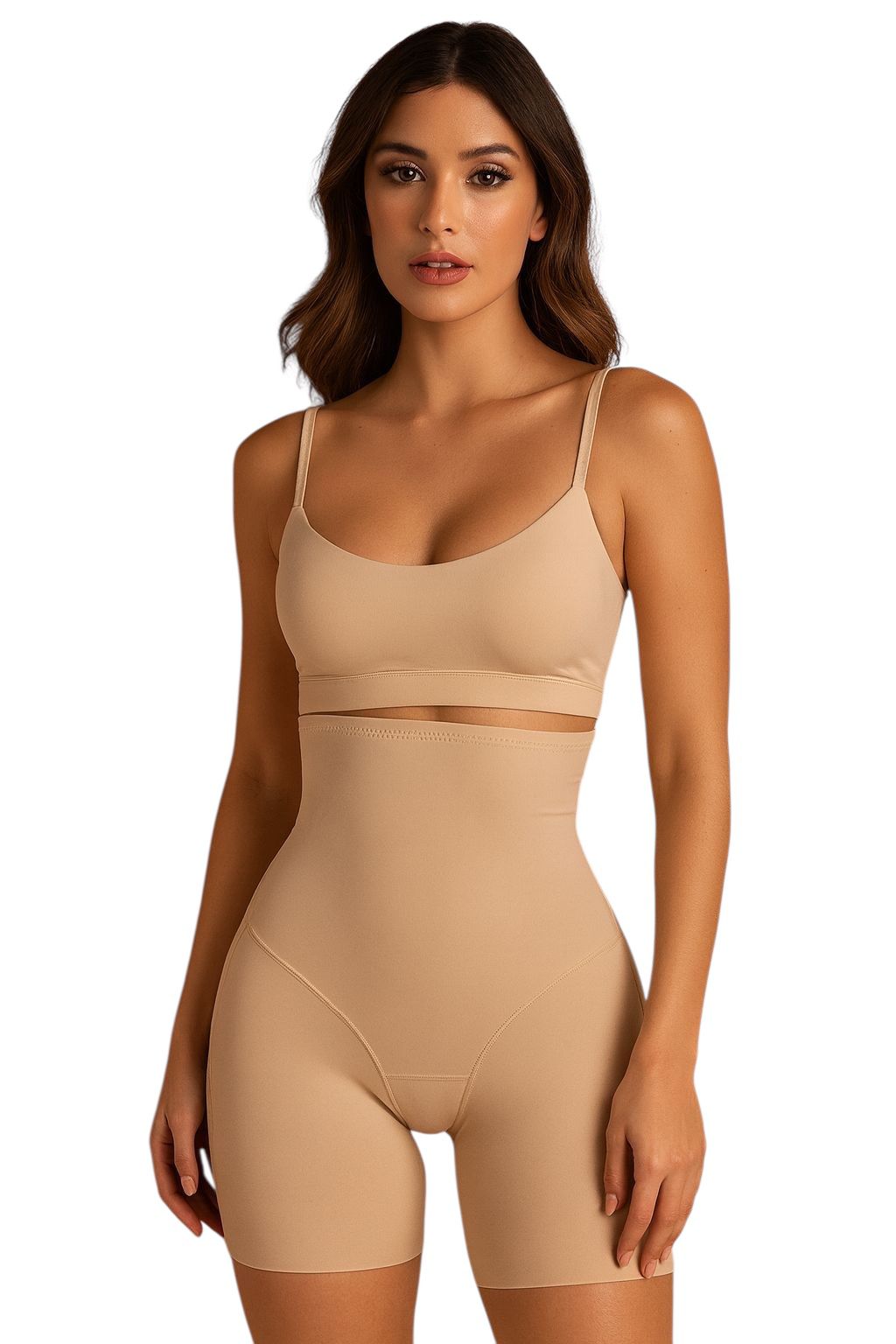 Calzón faja de control alto tipo short que moldea la cintura, el abdomen y las piernas con total comodidad.