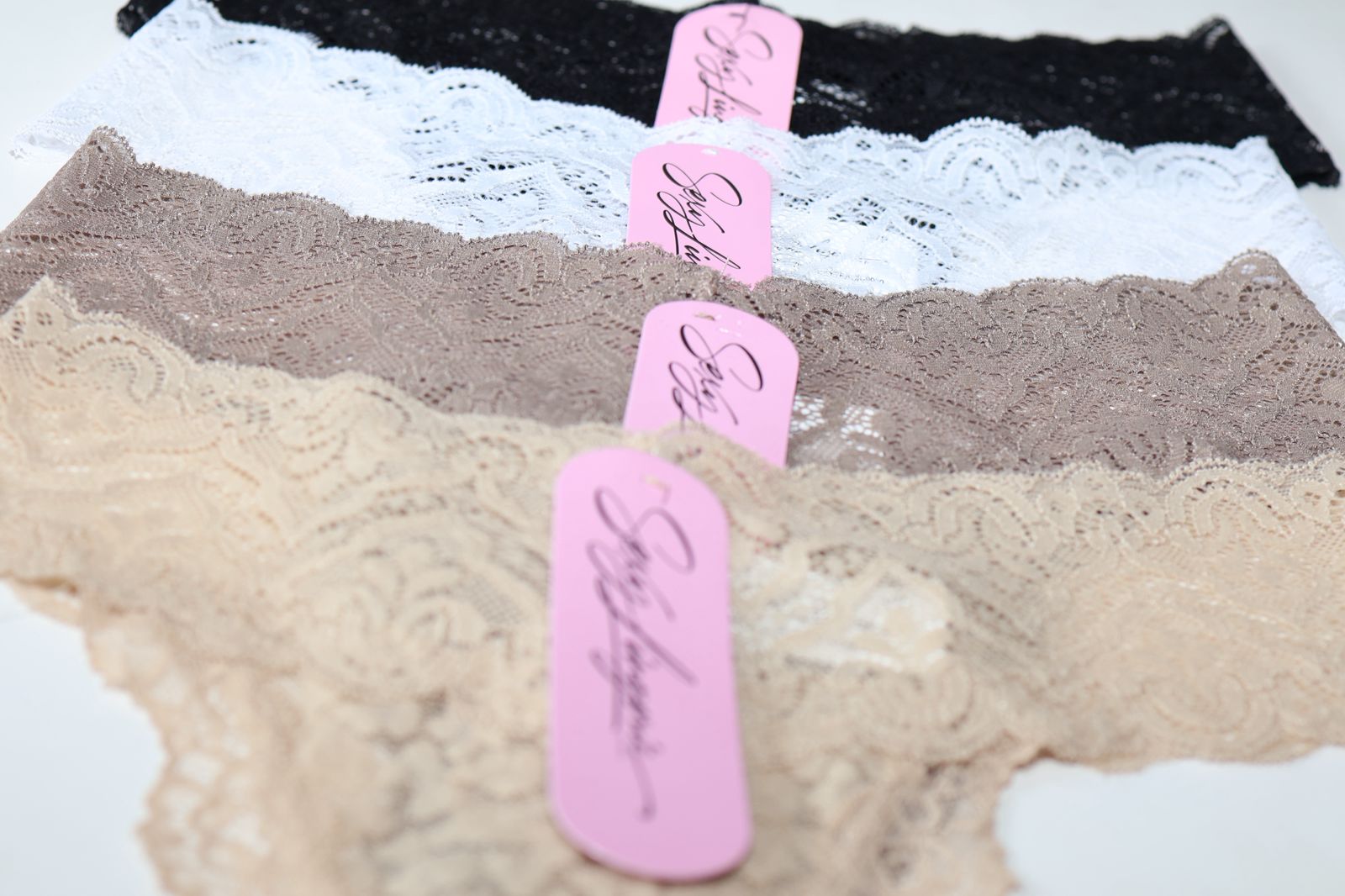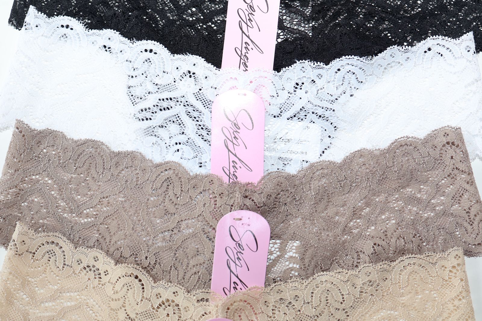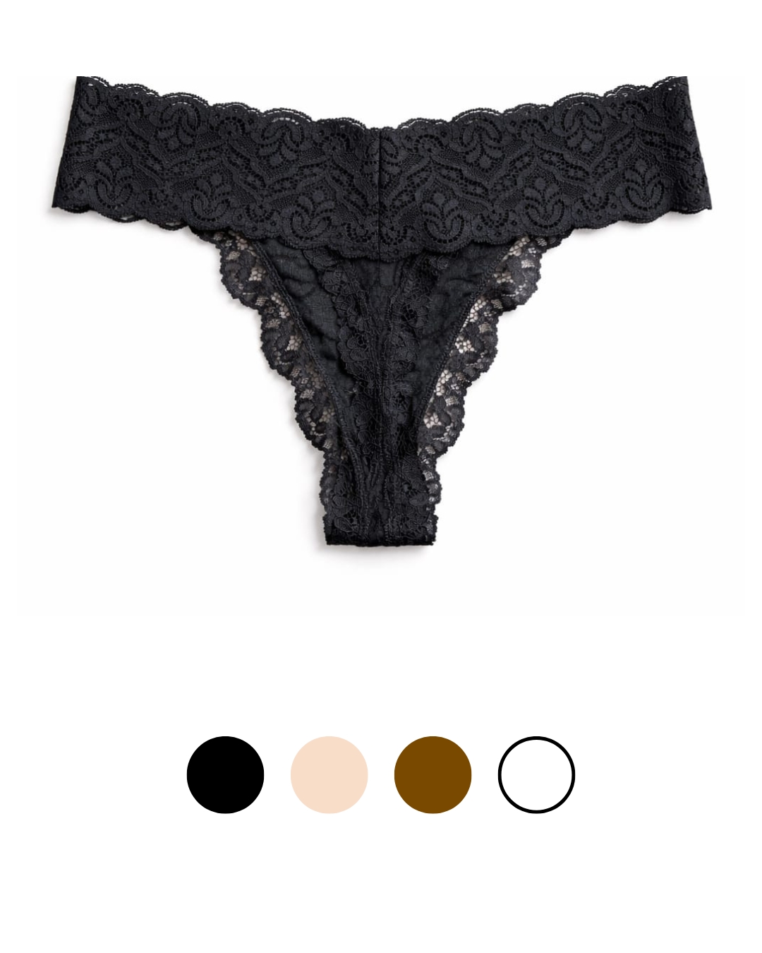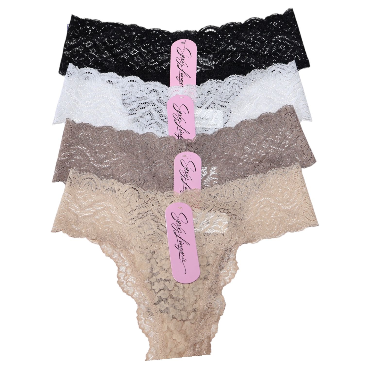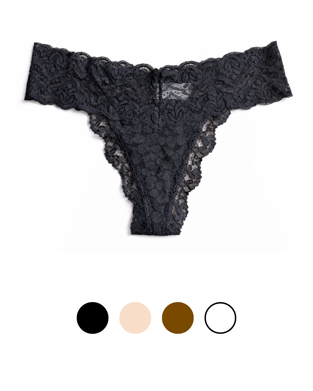 Calzones tipo tanga de encaje floral, suaves, cómodos y con un diseño femenino y sensual.