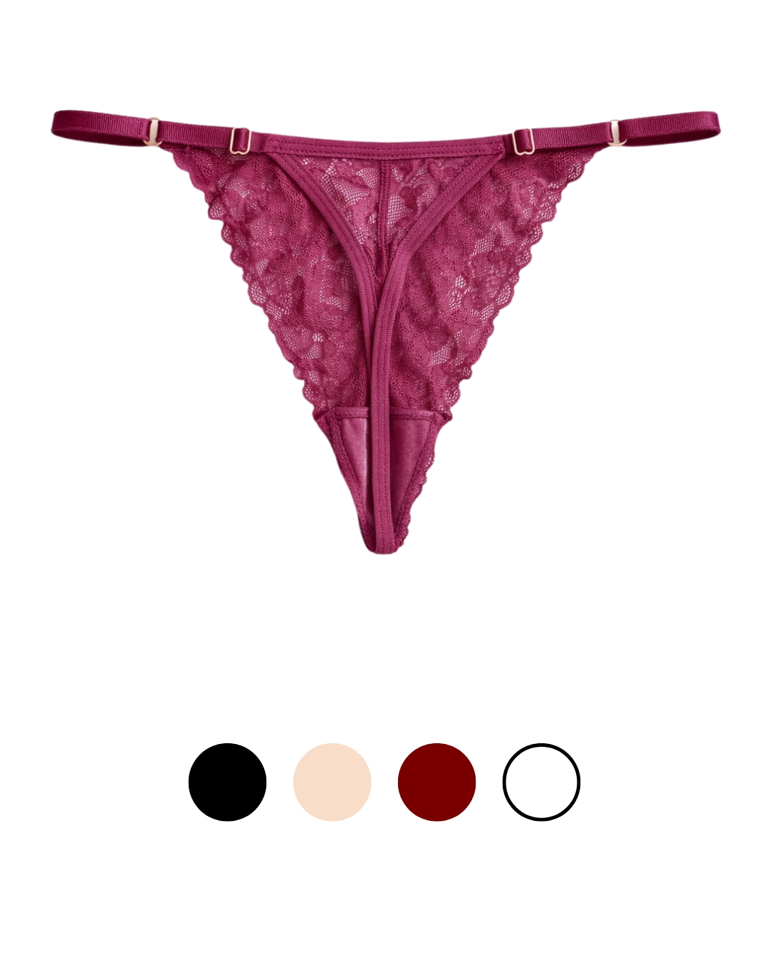 Hilo con diseño de encaje floral y tiras ajustables que realzan la silueta con un toque sensual y delicado.