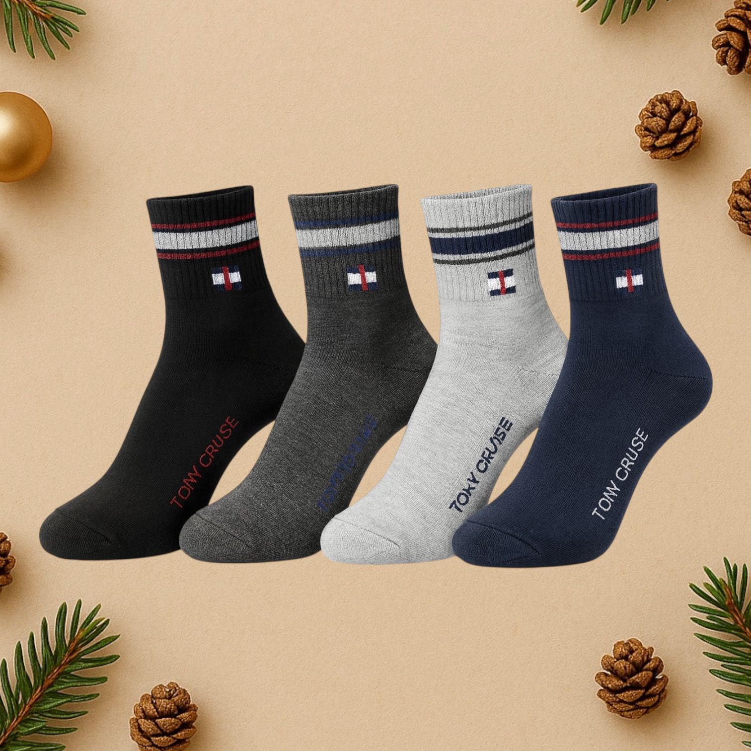 Estas medias combinan un estilo sobrio con un toque deportivo, perfectas para quienes buscan comodidad y elegancia en un solo producto. Están elaboradas con material suave, transpirable y de excelente elasticidad, brindando un ajuste seguro sin apretar. Su tejido resistente permite un uso prolongado manteniendo su forma, suavidad y buen aspecto con el paso del tiempo. Son ideales para uso diario, trabajo, actividades casuales o deportivas. Un básico imprescindible en cualquier guardarropa por su versatilidad, comodidad y durabilidad.