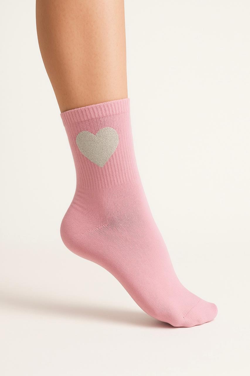 Medias con diseño moderno y detalle de corazón decorativo, confeccionadas en tejido elástico y suave para un ajuste cómodo y estilizado.