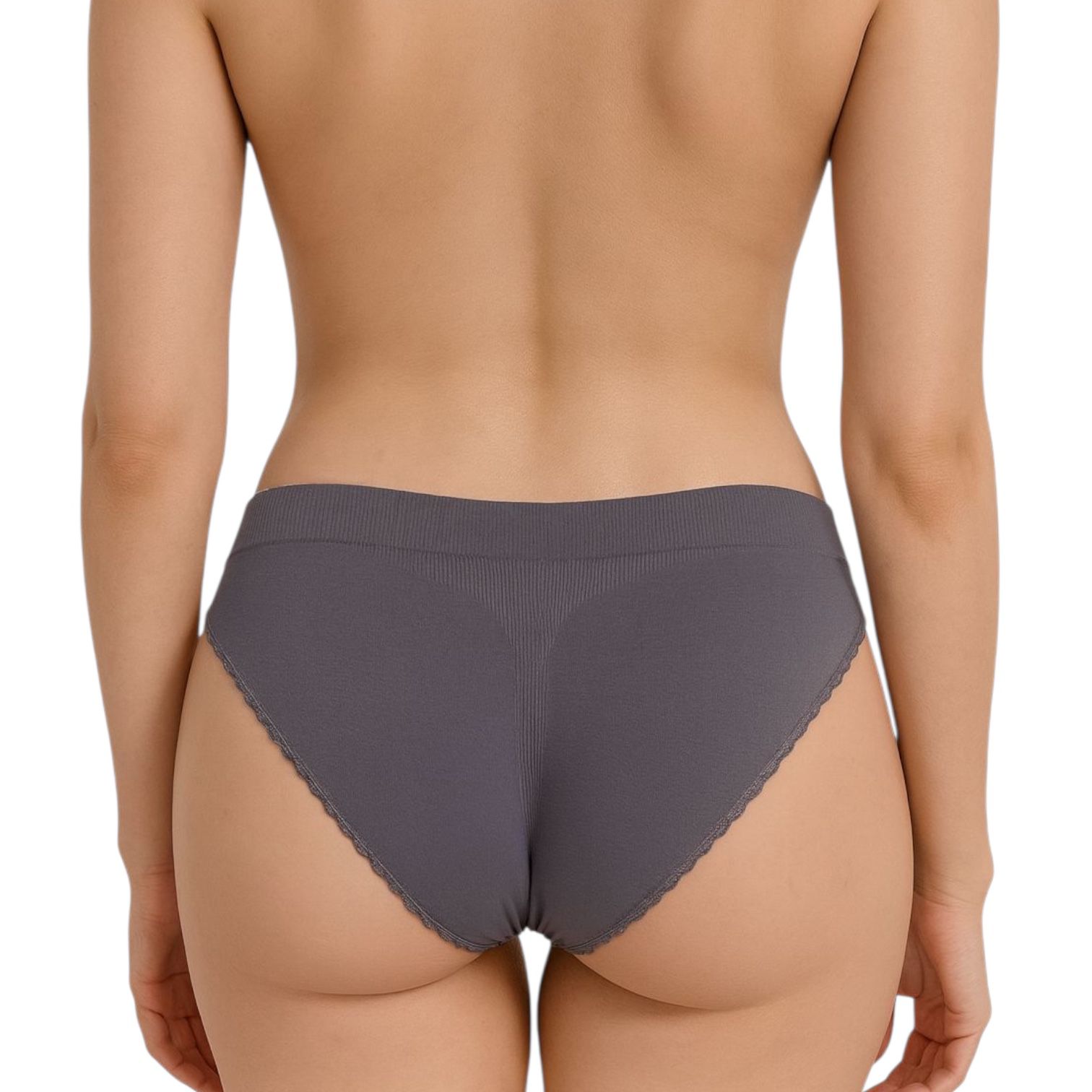 Este blumer es una prenda de ropa interior femenina de corte alto, diseñada para brindar comodidad y soporte durante el día. Está confeccionado en un material suave y elástico que se adapta perfectamente a la figura, proporcionando un ajuste cómodo sin marcar. Su diseño es sencillo pero elegante, con un acabado en la parte superior e inferior que cuenta con un delicado ribete en tono ligeramente contrastante. La tela es de un tono gris oscuro, lo que lo hace fácil de combinar con cualquier conjunto. Ideal para quienes buscan una prenda cómoda, discreta y de alta calidad.